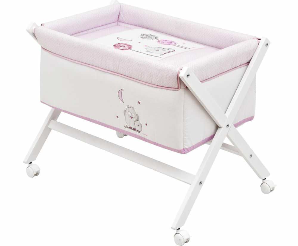 PETIT BERCEAU PIEDS X BOIS UNE+CIEL GUFO ROSE 55X87X74 CM